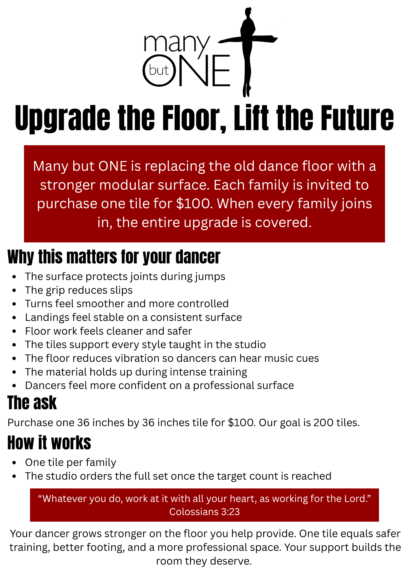 Thank you for supporting the ministry of Many but ONE. We are a non-profit organization. All donations are appreciated as they go right back into our goal to share the Gospel through the arts!